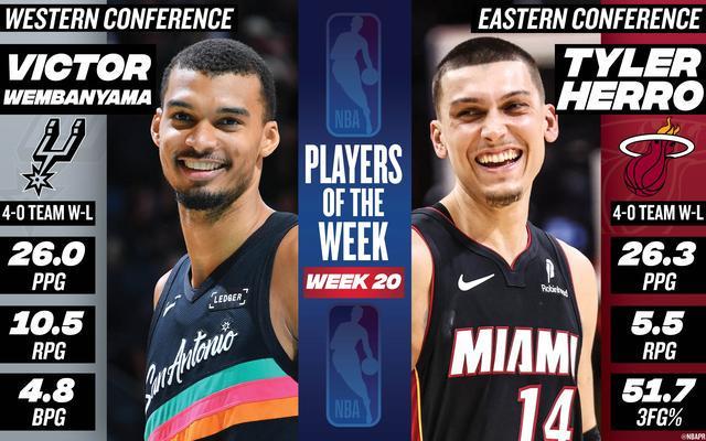 周最佳球员:西部维克托-文班亚马 东部泰勒-希罗